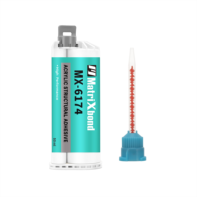 MX-6174是一款高性能黑色双组份丙烯酸酯结构胶。混合体积比10:1。室温固化,也可加热快速固化。无需对基材表面做严格处理,对工程塑料、磁铁、玻璃(油墨)、金属、陶瓷等多种基材都具有优异的粘接性能。具有好的韧性和抗冲击性能。