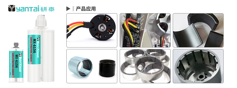 MX-6156双液型改性丙烯酸结构胶,室温固化、强度高、耐温高。用于电机、磁电机等各种电机中的铁氧体与电机壳间的组装与粘接。也用于扬声器T铁、磁铁、华司、钕铁硼的粘接。