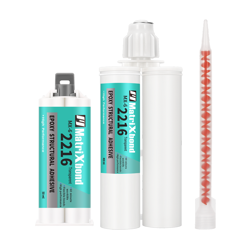 MX-62216 是一款双组分高性能混合型工业级韧性环氧树脂胶。即可 室温固化,也可以低温加热快速固化。完全固化后,具有优异的剪切强度、 剥离强度,良好的耐冲击、振动、弯曲以及耐低温性。对玻璃、陶瓷、金 属(不锈钢、铝合金、镀锌、镀镍等)、工程塑料(ABS 、PC、尼龙、PSU 聚 砜、PEI、PI、PEEK 等)等多种基材粘接优良。