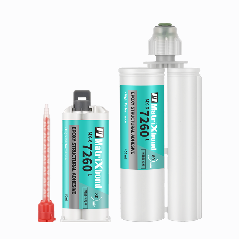 MX-6260HP 是一款双组分高性能混合型工业级韧性环氧树脂胶粘 剂。即可室温固化,也可以低温加热快速固化。完全固化后,具有优异的 剪切强度、剥离强度、良好的耐久性以及耐化学品。对塑料、玻璃、陶瓷、 金属及多数硬质非金属材料的粘接性能优异。
